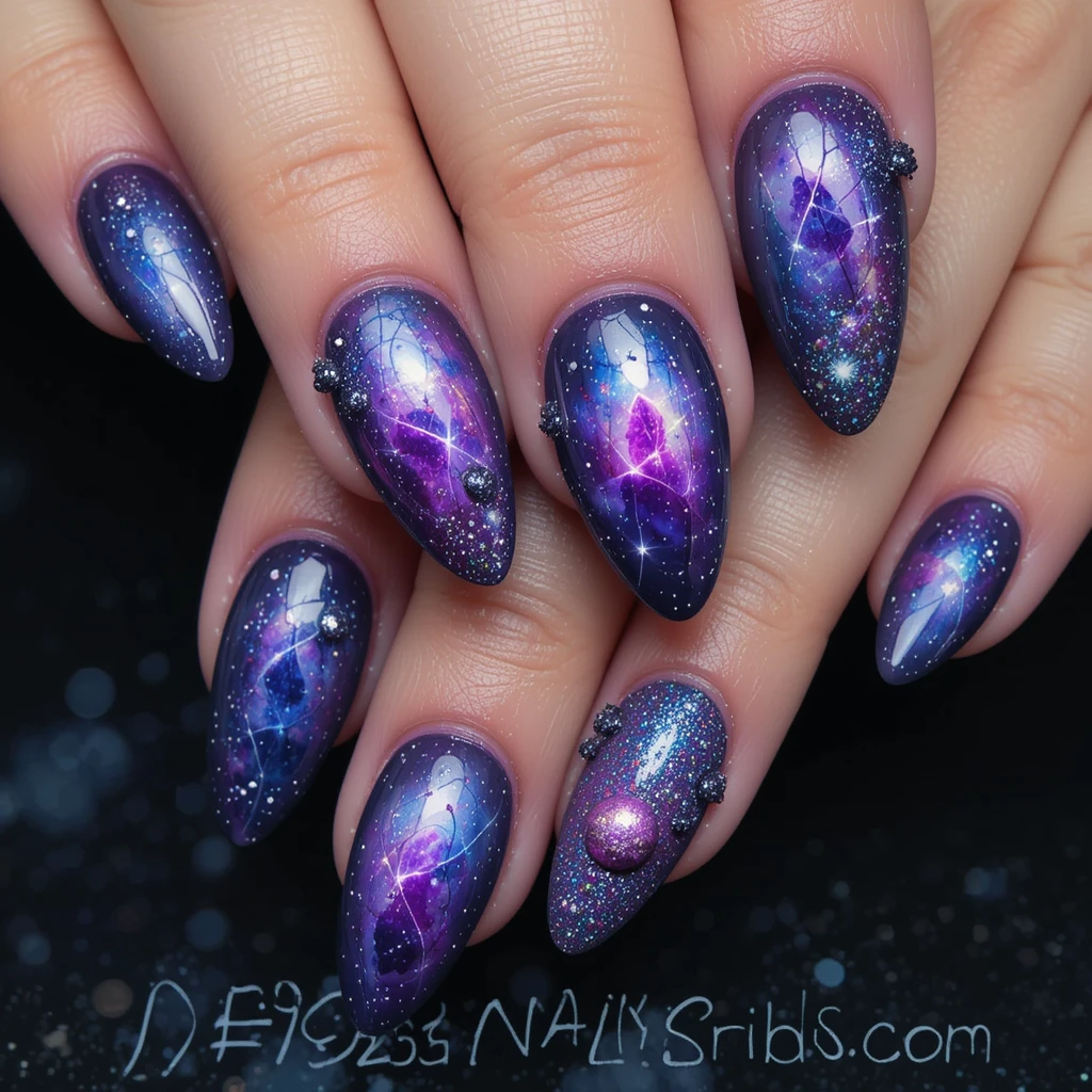 These sharp or tapered shapes enhance the dramatic look of ultra-long nails.